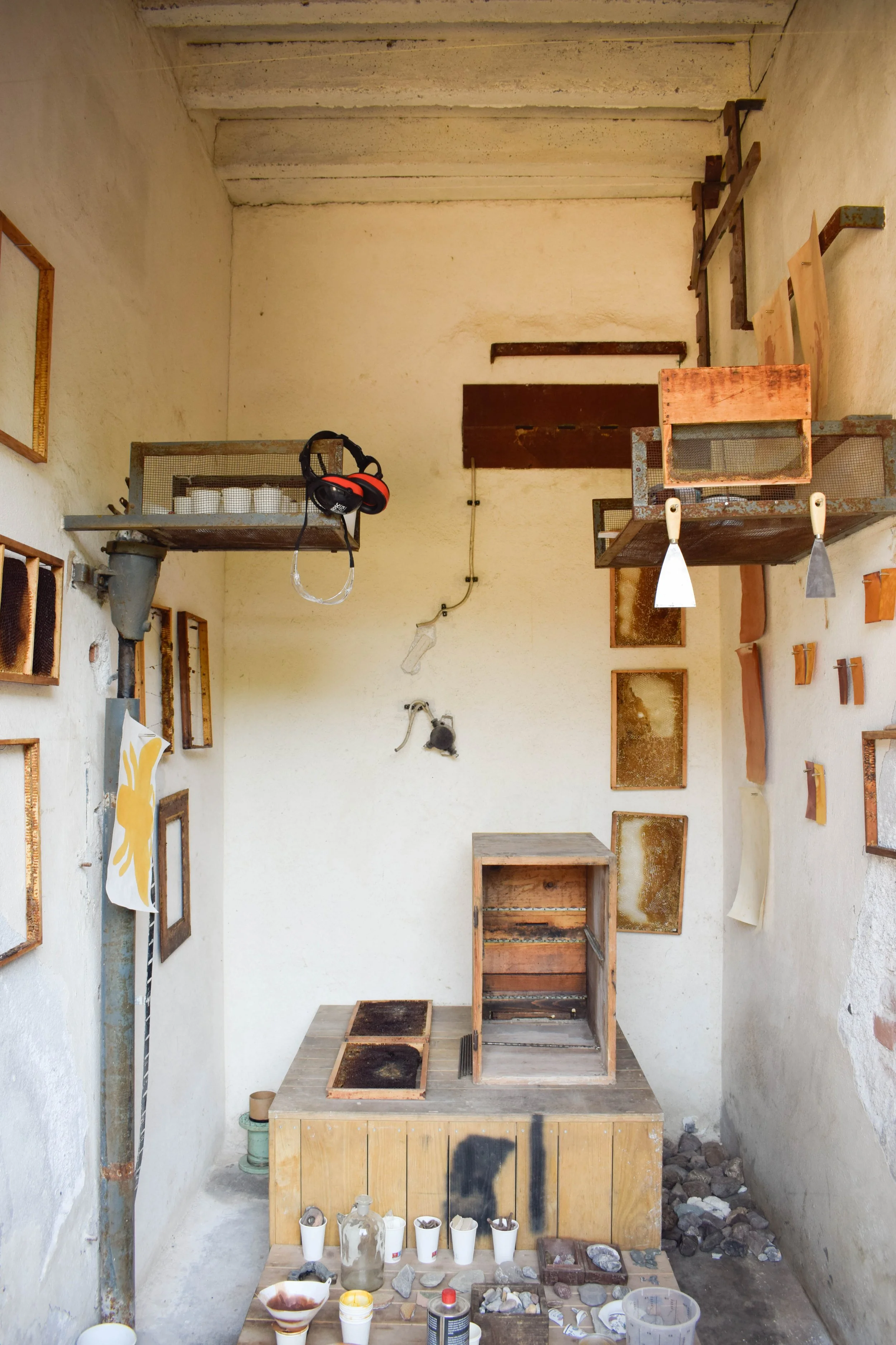 I gathered stones, pigments, and left-behind tools, letting their material histories guide me. Instead of bringing new equipment or industrial precision, I worked with limitation. With what the space itself offered.